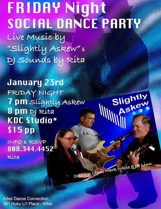Friday SPECIALTY WORKSHOP: Smooth-Style NYC Hustle 6 pm – 7 pm Prior to Social Dance Parties (KDC Studio 381 Huku Li’i Place, Kihei)
